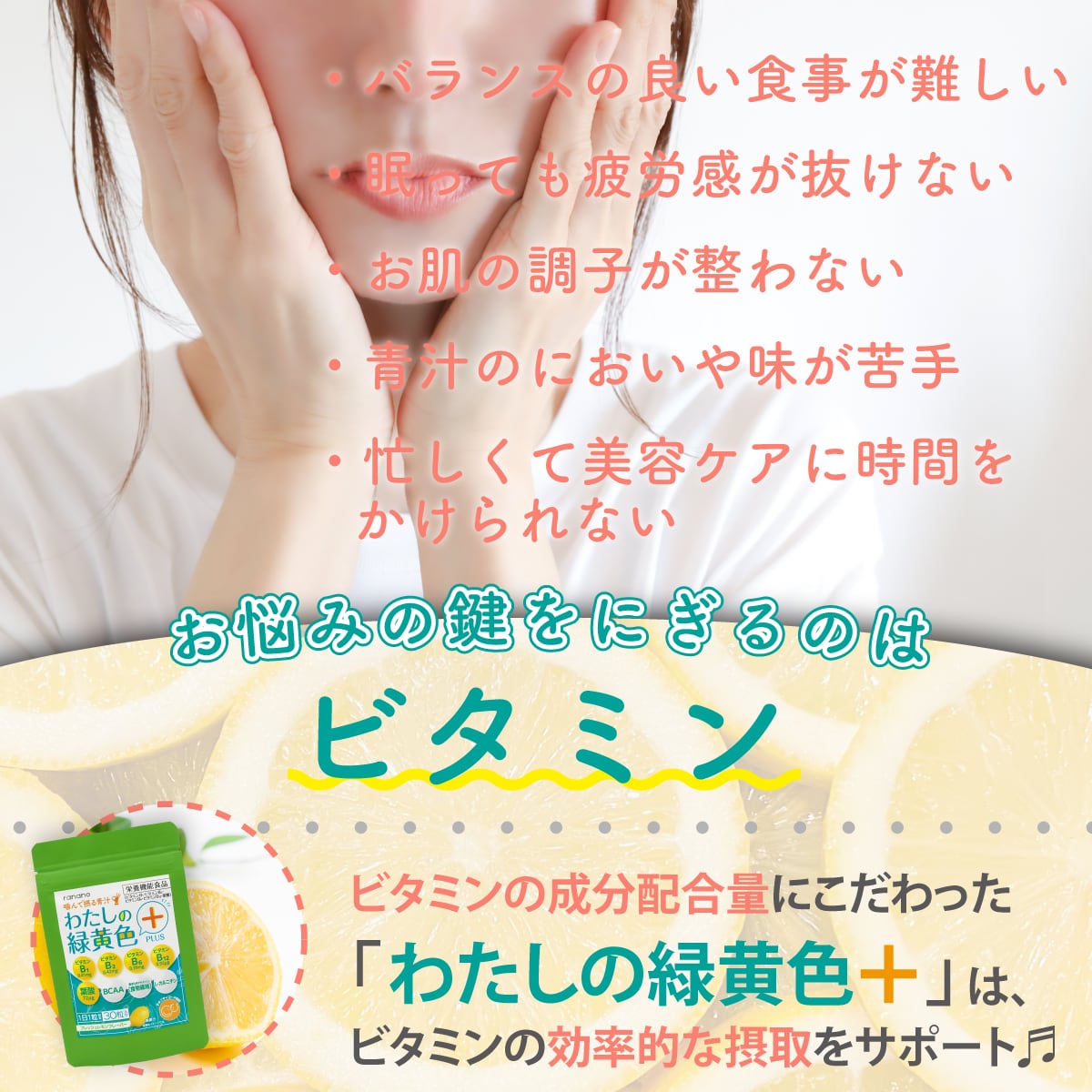透析患者 が作った 青汁 タブレット わたしの緑黄色+ 30粒入り レモン味 マタニティフード認定 栄養機能性食品 水不要 噛んで食べる サプリ